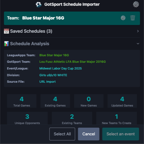 GotSport Schedule Importer